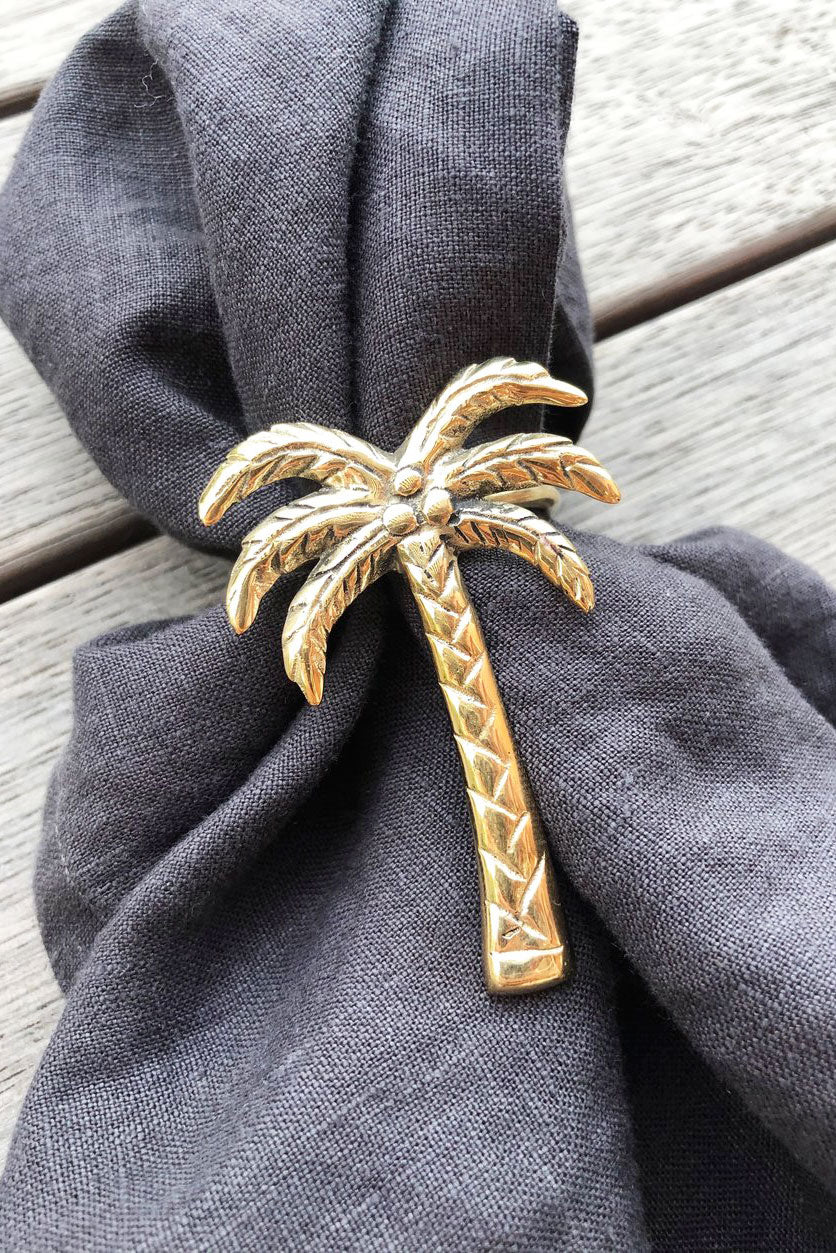 The perfect decor piece to give your table setting that coastal vibe, this brass palm tree napkin ring is both gorgeous and practical.